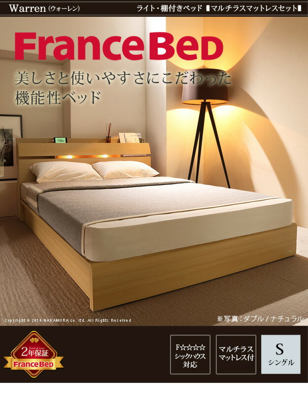 フランスベッド ライト・棚付きベッド ウォーレン ベッド下収納なし シングル マルチラススーパースプリングマットレスセット mu-i-4700529送料無料 北欧 モダン 家具 インテリア ナチュラル テイスト 新生活 オススメ おしゃれ 後払い フレーム