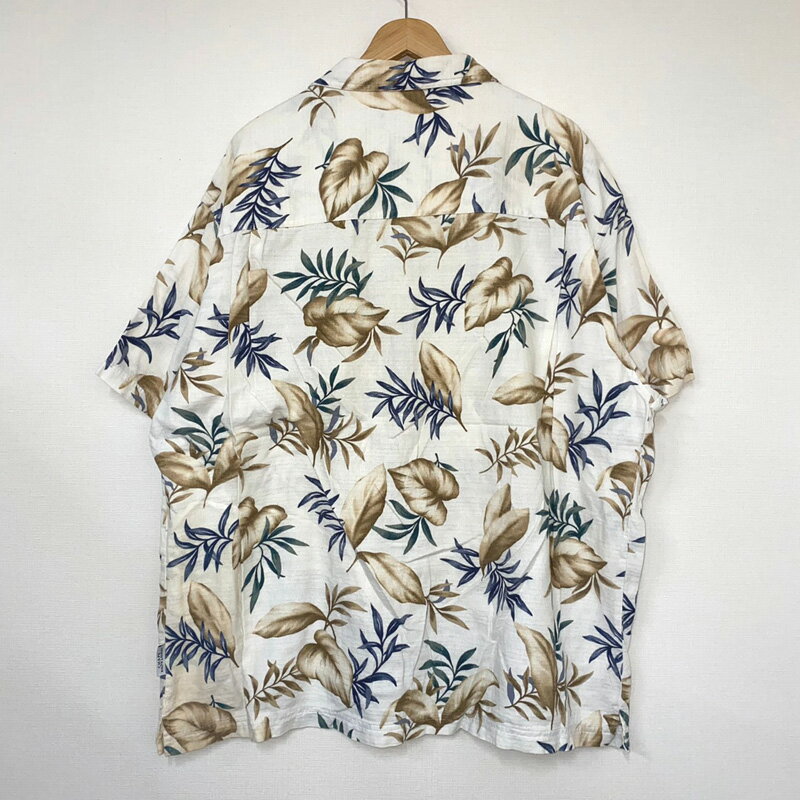 素材 100%COTTON サイズ 表記:XL 身幅64cm 肩幅57cm 着丈77cm 袖丈24cm 商品説明 ・ボタニカル柄で、カラーはベージュ×グリーン×ネイビー。
