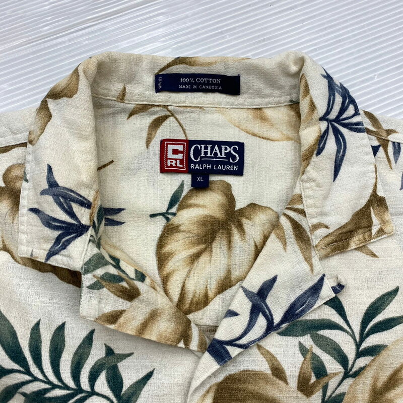 チャップス ラルフローレン CHAPS RALPH LAUREN アロハシャツ 半袖 ボタニカル柄 総柄 サイズ:XL ベージュ×グリーン×ネイビー【古着】 古着 【中古】 中古 mellow 【あす楽対応】【古着屋mellow楽天市場店】