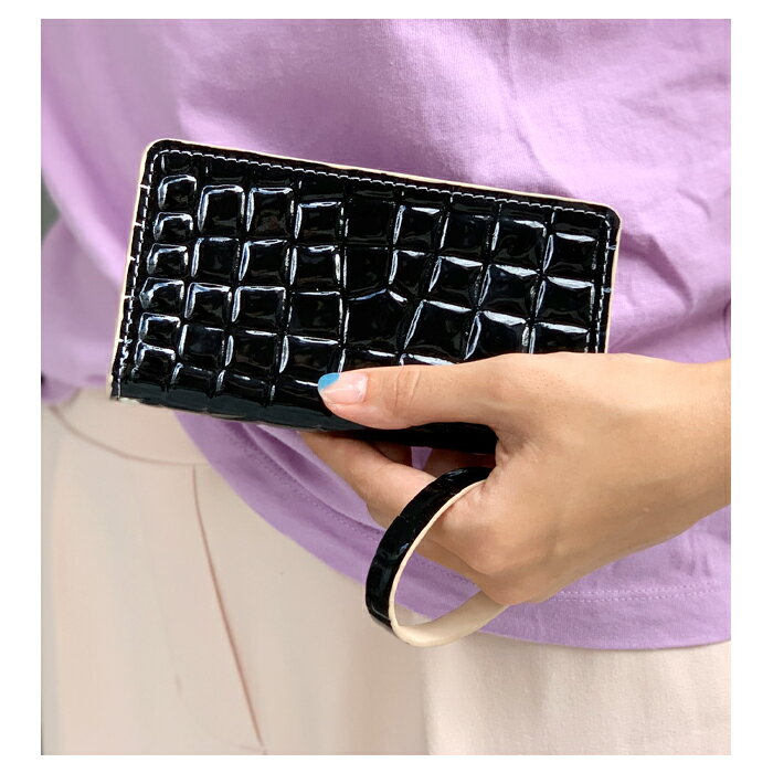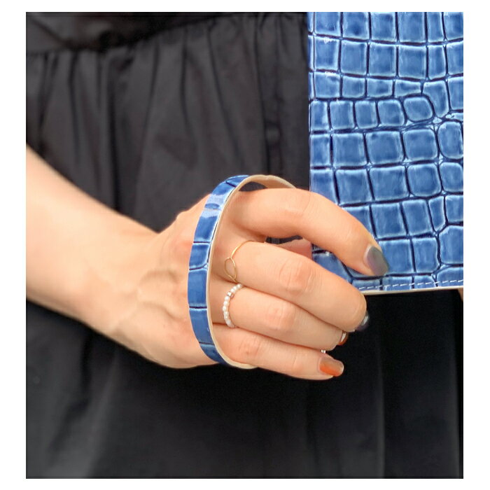 クロコダイル風の型押しとエナメル加工を施した本革を使用しております。
