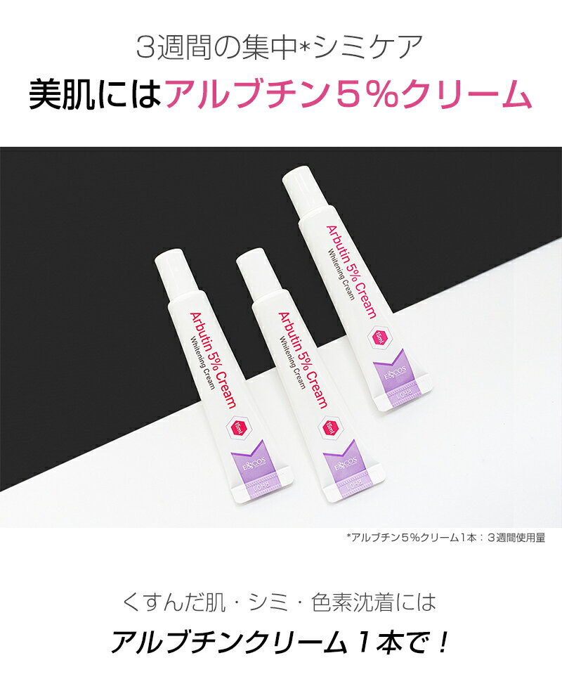 アルブチンは最大使用量5%でメラニンの生成を抑制し、肌の酸化を防止します。