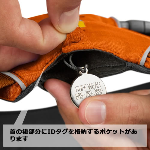 リードを装着するリングは、首の少し後方にアルミニウム合金のVリングが、胸部には柔らかいナイロンとゴムのリングが付いており、一般的な使用方法の場合にはVリングの方を使用します。