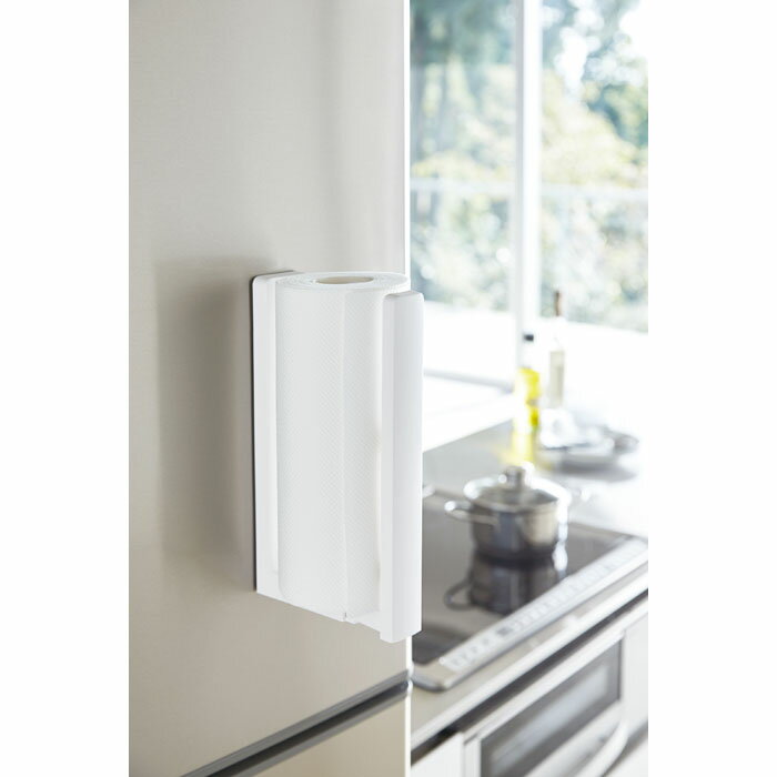 ストッパー付マグネットキッチンペーパーホルダー タワー ホワイト 03398 | マグネット 磁石 キッチン ペーパー ホルダー 台所 便利 おしゃれ シンプル 山崎実業 YAMAZAKI