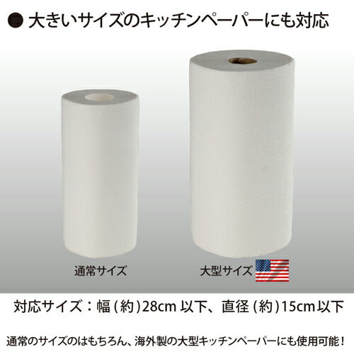 商品説明 ●ロール式のキッチンペーパーを片手でカットできるホルダー ●海外製の大型サイズのキッチンペーパーにも対応! もちろん通常サイズのキッチンペーパにも使用いただけます! ●吊り下げても置いても使える2WAY仕様 ●シンプルなデザイン、生活感の出るキッチンペーパーの目隠しに ●マグネットを貼れるので、レシピやタイマーなどキッチン周りの小物を見やすい位置に! 材質:本体/スチール(ポリエステル粉体塗装) 滑り止めゴム/ポリウレタン 切り口用ゴム/シリコン 耐荷重量(約):1kg サイズ(約):W33.5×D13.5×H19.5cm 対応キッチンペーパーサイズ(約): 直径15cm× 幅28cm以下 日本製 【株式会社ツインズ】 TEL: 047-449-8380 TEL(お客様ご相談センター):0120-980-997 お問い合わせフォーム: ttp://twins-corp.com/contact/ ※上記アドレスの左端に「 h 」をつけてブラウザーにてご確認ください。